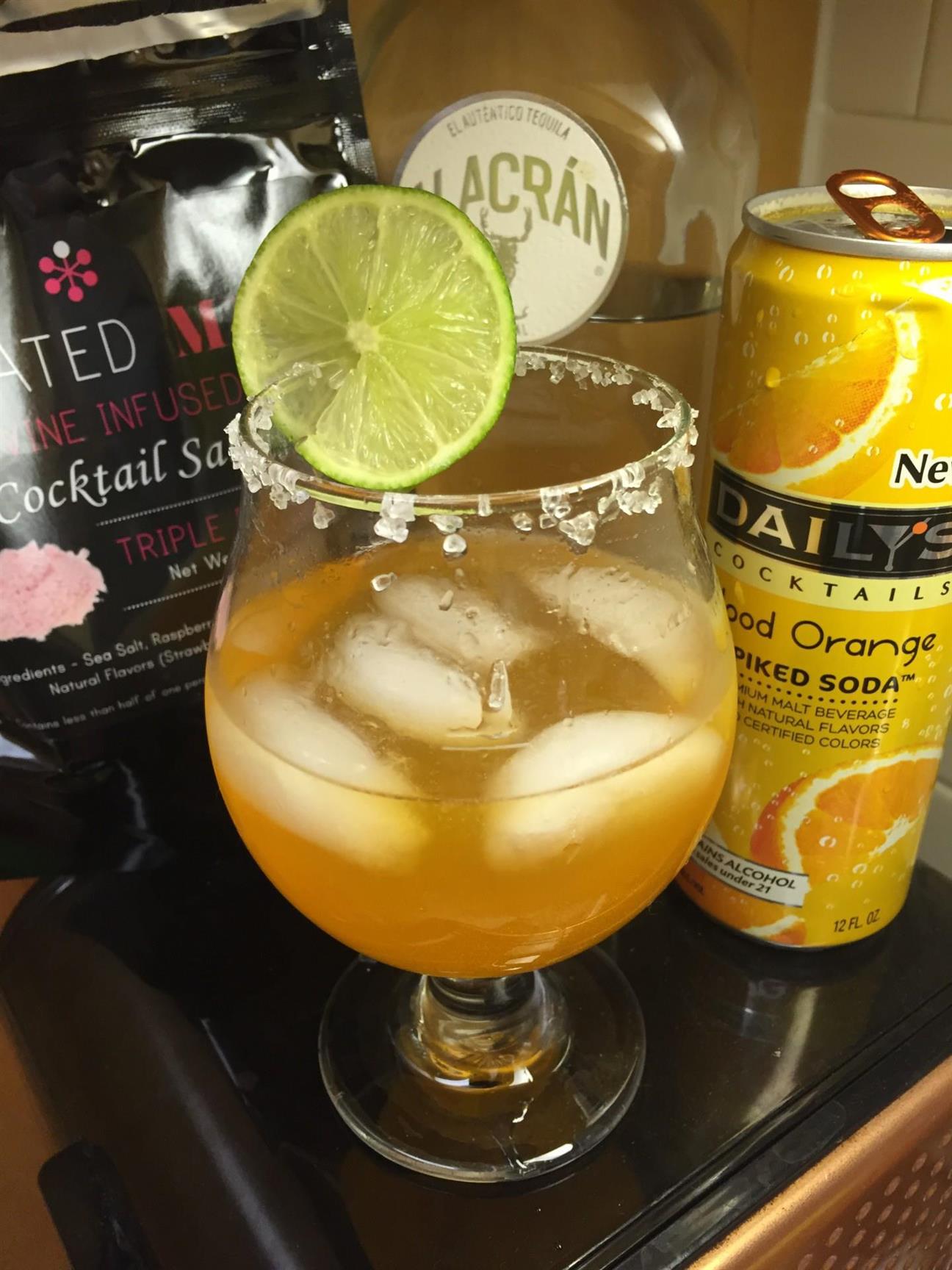 rim a fun Daily’s Blood Orange Spiked Soda cocktail I made. This was my improv margarita using the spiked soda, Alacrán tequila, and some lime. The salt added the fruity and salty kick this cocktail needed to take it up another notch.