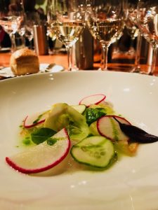 I and a number of wine writers and sommeliers joined Victor at Gramercy Tavern for a lovely wine pairing lunch. Here we enjoyed a wonderful selection of wines paired with the iconic restaurant’s cuisine. We started off with the 2012 Yarden Brut Rosé which is a great aperitif and perfect on a hot summer day. This would easily pair with seafood, cheeses, and charcuterie. The 2017 Sauvignon Blanc, 2017 Pinot Gris, and 2016 Katzrin Chardonnay were the first three wines in our wine lineup. Paired with these wines was Marinated Fluke with cucumber, basil, and lime. To compare